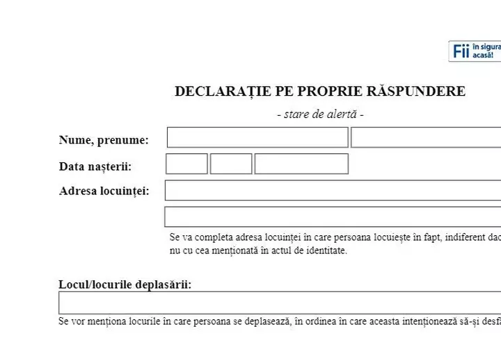 Actualitate Cum arată noua declarație pe propria răspundere pentru ieșirea din localitate. Ce condiții trebuie să îndeplinești