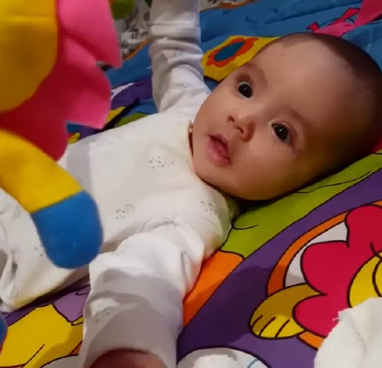 Recent, cea mică se amuza de o jucărie pe care mama sa i-o arăta. Oana nu a putut rata acest moment şi imediat a filmat-o. Se vede că s-a dezvoltat, are aproape două luni de zile.