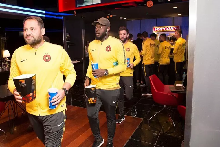 Fotbaliştii s-au relaxat cu cina şi un film chiar în Bucureşti. Au urmărit cu mare atenţie comedia şi s-au distrat de minune. Imediat după, s-au declarat încântaţi, mai ales că numele echipei lor apare pe parcursul peliculei.