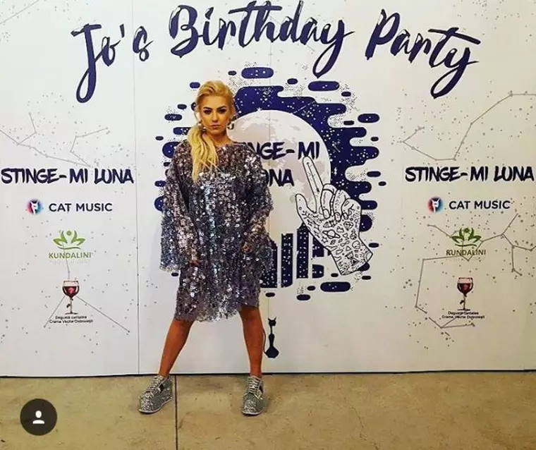 Aceeaşi pereche de încălţări a purtat-o şi Jo la party-ul dat în cinstea zilei sale de naştere. Cântăreaţa şi-a sărbătorit împlinirea celor 23 de primăveri într-o ţinută spectaculoasă. De data aceasta platformele cu glitter au fost purtate la o rochie midii, cu paiete argintii. La prima vedere am putea spune că este too much, dar fiind ocazia potrivită, în lumina reflectoarelor Jo a strălucit la propriu şi la figurat.