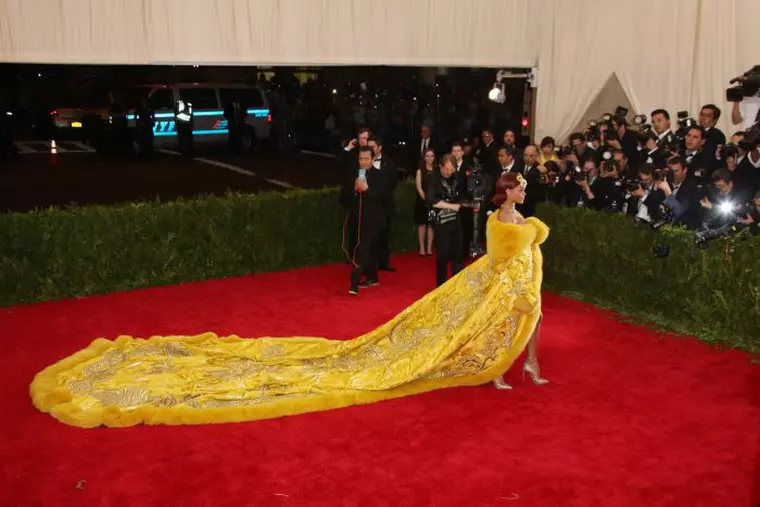 A fost lungimea în picioare a trenei rochiei galbene a Rihannei, creată de Guo Pei, la Met Gala în 2016.
