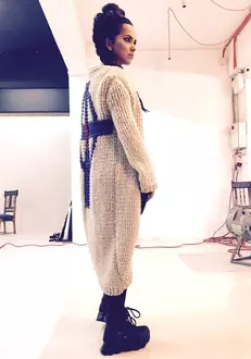 Mai mult, se pare că are o pasiune pentru motivele tradiționale românești, întrucât se simte foarte bine în fracul realizat 100% din lână organică, croșetat manual, care are pe spate tradiționala cruce maramureșeană.