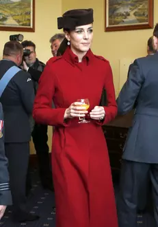 Pentru acest eveniment, Kate s-a oprit la unul dintre designerii ei preferaţi, L.K. Bennett, Ducesa îmbrăcând un palton roşu foarte elegant.