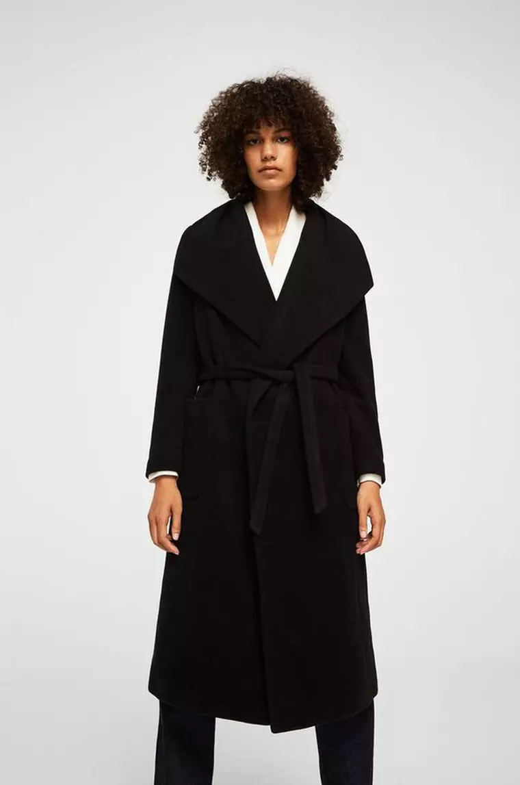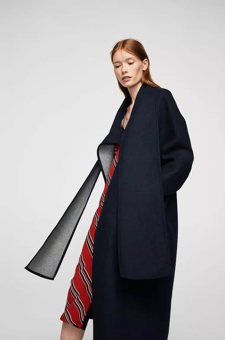 Un palton care poate fi purtat atat la tinutele de zi, cat si la cele de seara, deoarece gulerul tip fular ii da un aer sic si elegant. Poarta-l cu jeansi si un pulover oversized si botine cu varf ascutit ori cu o rochie din tricot si cizme.
