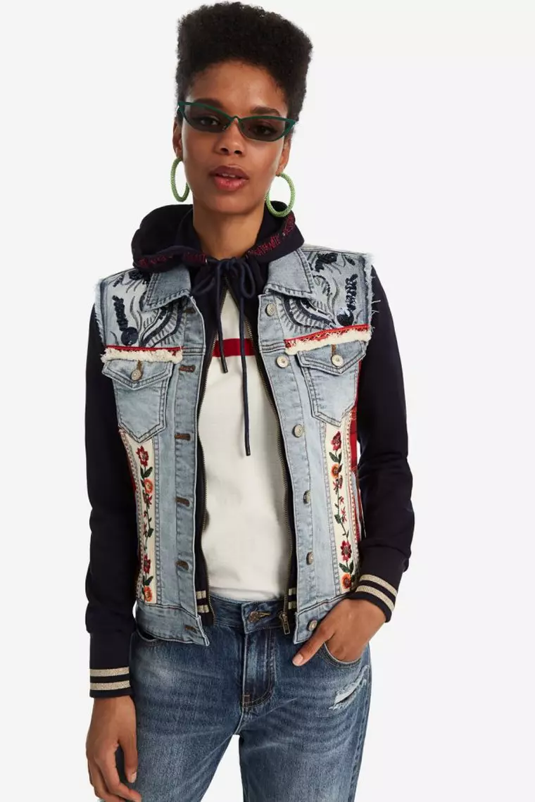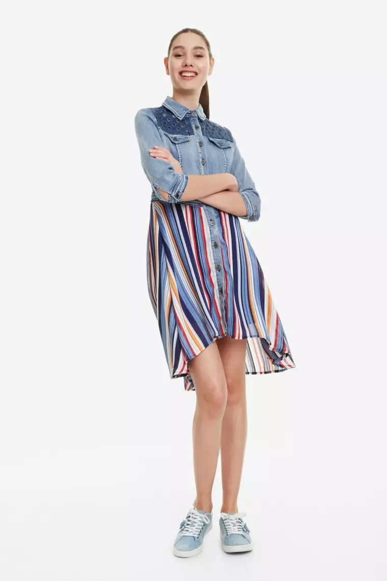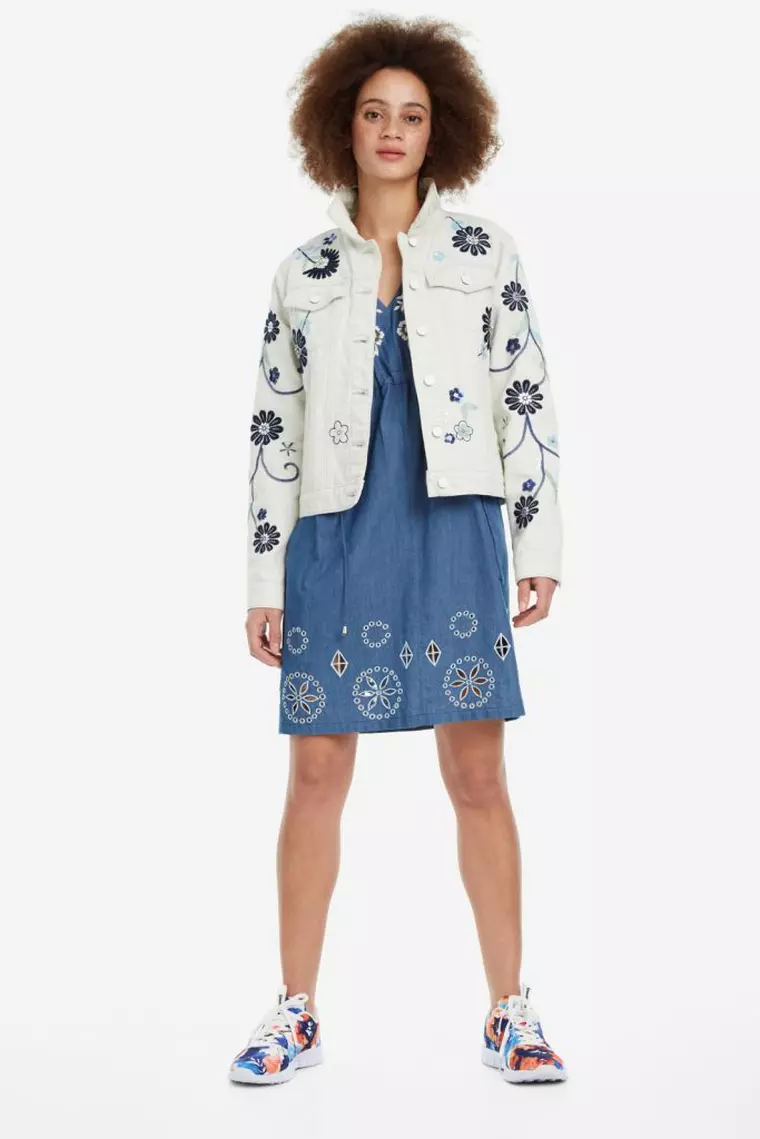Desigual te va surprinde cu rochia al cărui top este din blugi. Jumătate jachetă, jumătate rochie, aceasta este combinația pe care o vei îndrăgi pentru zilele de birou.