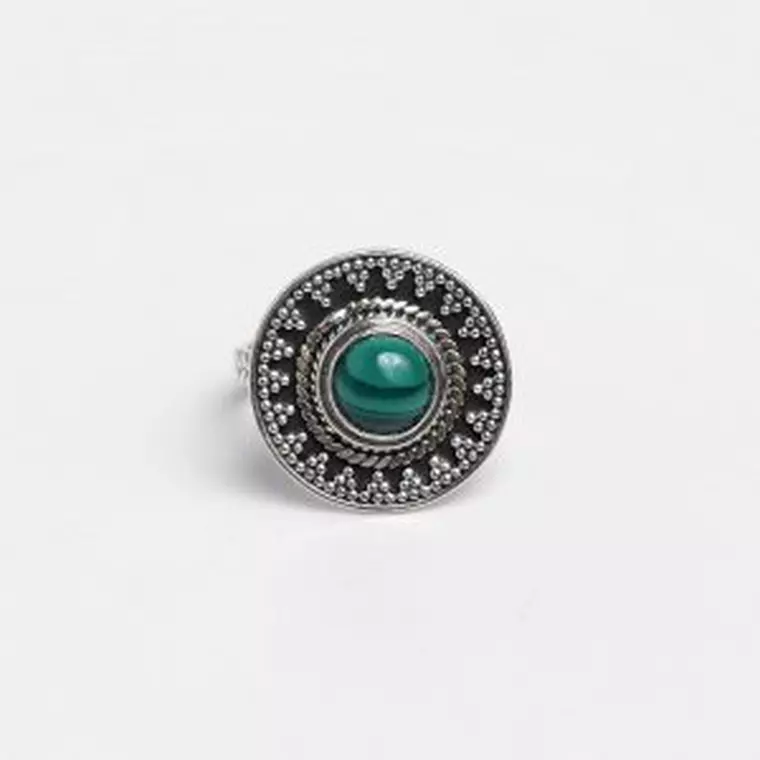 În India se lucrează unele dintre cele mai frumoase și feminine bijuterii din lume. Acolo, confecționarea bijuteriilor a devenit o adevărată artă. Astfel, un inel rotund, din argint și malachit, lucrat manual în India, nu putea lipsi de pe lista noastră de recomandări. Acesta este elegant, feminin și cu detalii de granulație deosebite.