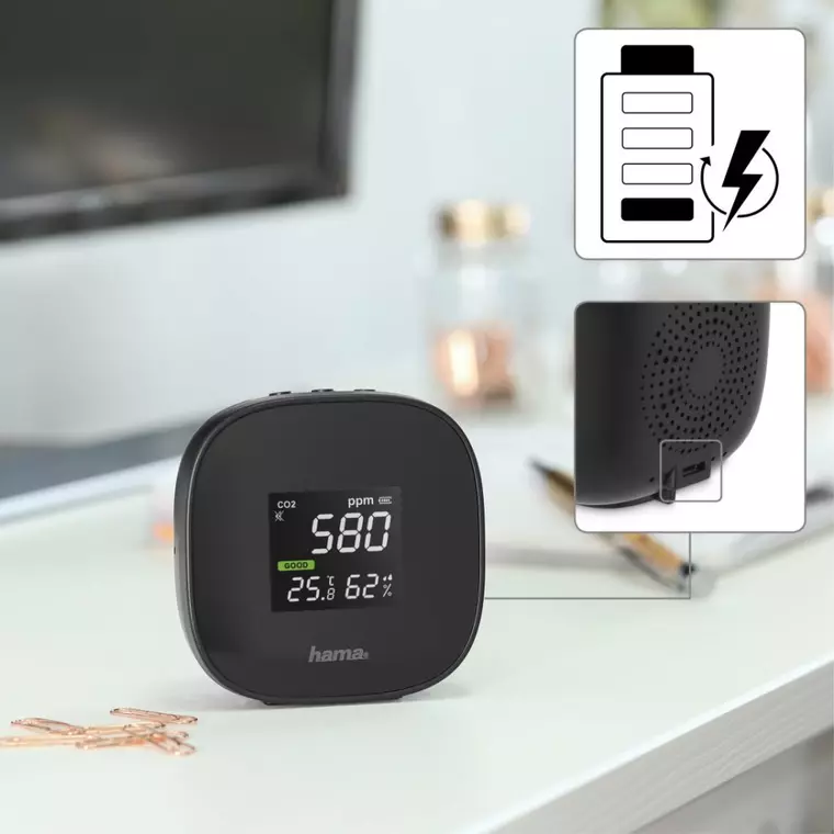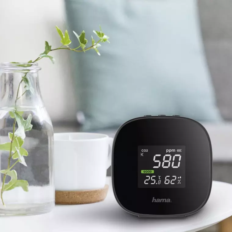 Ținem o dietă sănătoasă si echilibrată, ne abținem de la consumul de zahăr și alcool, facem sport. Ceea ce uităm adesea este că ne petrecem cea mai mare parte a timpului în interior. Clima interioară joacă un rol considerabil în sănătatea și bunăstarea noastră. Echilibrul dintre concentrațiile de oxigen și CO2, precum și temperatura și umiditatea sunt la fel de importante în birou, ca și în spațiile noastre de locuit. Dar de unde știm dacă calitatea aerului din interior este în parametrii normali? Toată lumea simte lucrurile în mod diferit. Nu vă bazați pe sentimentele personale, lăsați-vă ghidat de date corecte, așa cum ne furnizează dispozitivul nostru de măsurare a calității aerului Hama „Safe”.