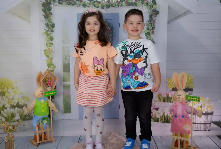 A combinat elemente sport (pantaloni jogger, pantofi sport) cu accesorii de designer.Frățiorii Ema și Mark (5 și 6 ani) sunt îndrăgostiți de ținutele cu personaje din desene animate și au ales ținute casual chic pe care să le poarte la biserica, precum și la mesele în familie.