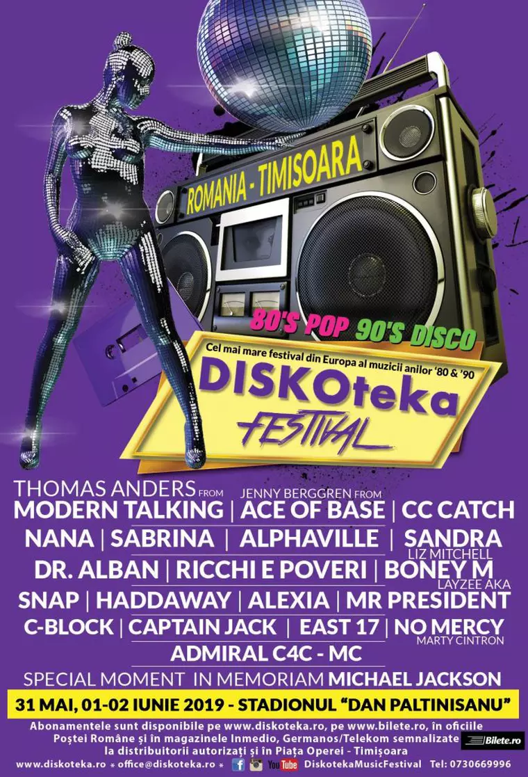Din totalul de 45.000 de abonamente puse în vânzare, s-au vândut până la sfârșitul săptămânii trecute mai bine de jumătate. „Peste 23.000 de români se pregătesc pentru distracție la cel mai mare festival din Europa dedicat muzicii anilor 80 și 90, după ce și-au cumpărat abonamente la Diskoteka Festival. Între 31 mai și 2 iunie 2019, artiști precum Modern Talking, Ace of Base, CC Catch, Alphaville, Sandra, Nana, SNAP!, Sabrina, Haddaway, Boney M sau East 17 vor cânta în Timișoara pe cele 5 scene ale festivalului', declară organizatorii. Diskoteka Festival 2019 este un concept care are succes în țări precum Polonia, Rusia sau Slovacia și ajunge în România după câțiva ani de așteptare.