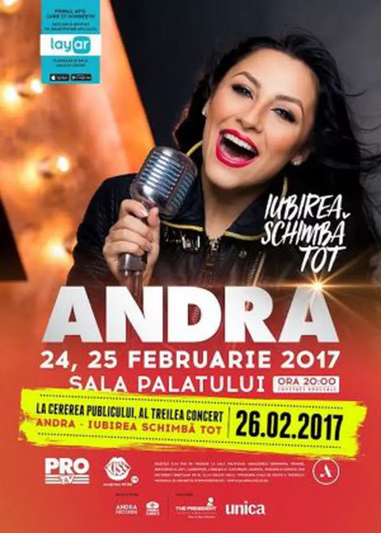 Andra va concerta săptămâna viitoare la Sala Palatului pentru 15.000 de fani. Artista va susține trei concerte cu casa închisă în trei zile consecutive: 24, 25 și 26 februarie.