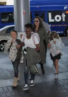Angelina şi cei 6 copii, Maddox, Pax, Zahara, Vivienne, Knox şi Shiloh au fost surprinşi pe aeroportul din Los Angeles, toată lumea fiind extrem de veselă şi aşteptând cu mare nerăbdare vacanţa.