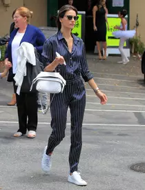 Aşa s-a întâmplat şi de data aceasta, când Alessandra, îmbrăcată într-o salopetă în dungi, a fost surprinsă alături de Anjia şi Noah. La 7 ani, Anjia este o frumuseţe de fetiţă, ea pozând cu nonşalanţă pe străzile din California.