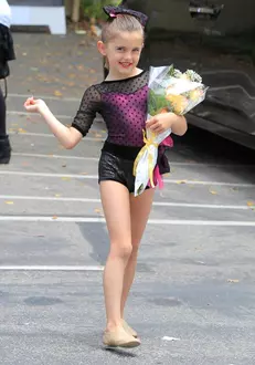 Îmbrăcată într-un costum de balet, cu o acadea în gură şi un buchet de flori în braţe, Anjia promite să calce pe urmele mamei sale şi demonstrează că frumuseţea este o moştenire de familie.