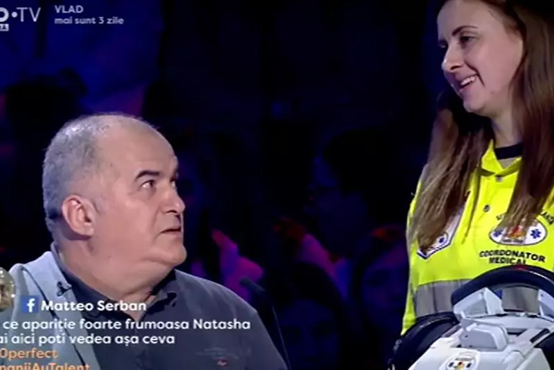 Probabil că puțini sunt cei care au ratat spectaculosul moment de belly dance de la Românii au talent al Natashei Korotkina, o dansatoare de 30 de ani, originară din Ucraina, iar mișcările unduitoare ale tinerei nu i-au scăpat nici lui Florin Călinescu. Actorul, numai ochi și urechi, dar mai ales ochi, a devenit imediat ținta glumelor colegilor săi de platou, ca atare s-a gândit să mimeze un leșin. Urmarea? A fost chemată echipa mediacală pentru a-i lua tensiunea… Gluma s-a transformat însă imediat într-un caz de urgență!