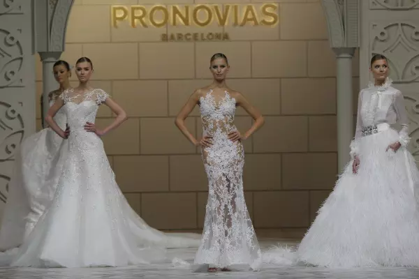 Ilinca Vandici la show-ul Pronovias de la Barcelona. Karolina Kurkova pe catwalk
