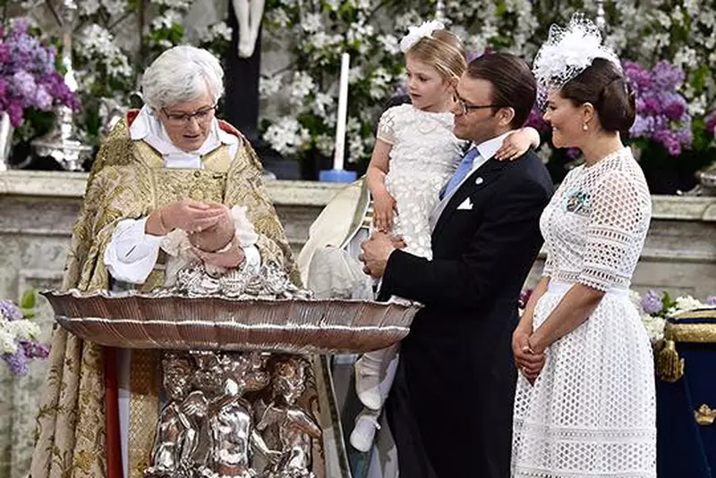 Alături de ei s-au aflat naşii micuţului, prinţesa Mette-Marit a Norvegiei şi prinţul Frederik al Danemarcei, dar si Madeleine, sora mai mică a Victoriei, alături de cei doi copii ai săi.