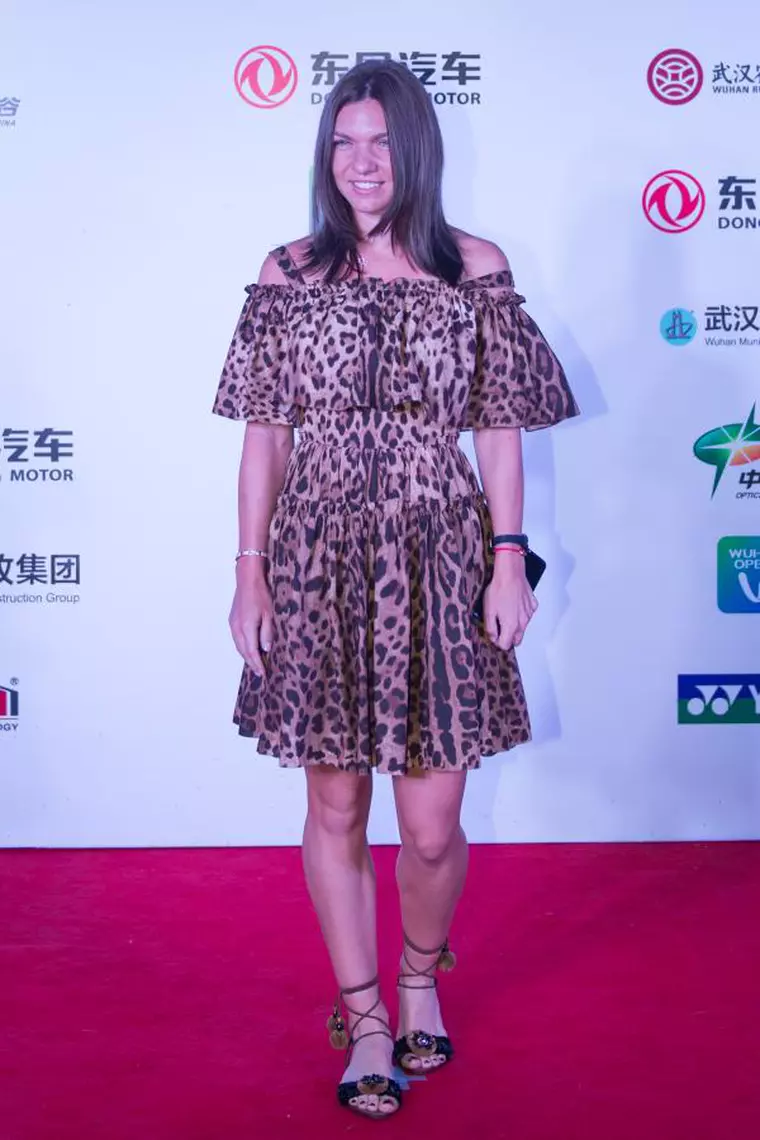 Jucătoarea română de tenis a fost prezentă la petrecerea oferită de gazde unde şi-a făcut apariţia într-o rochie animal print, accesorizată cu sandale fără toc.
