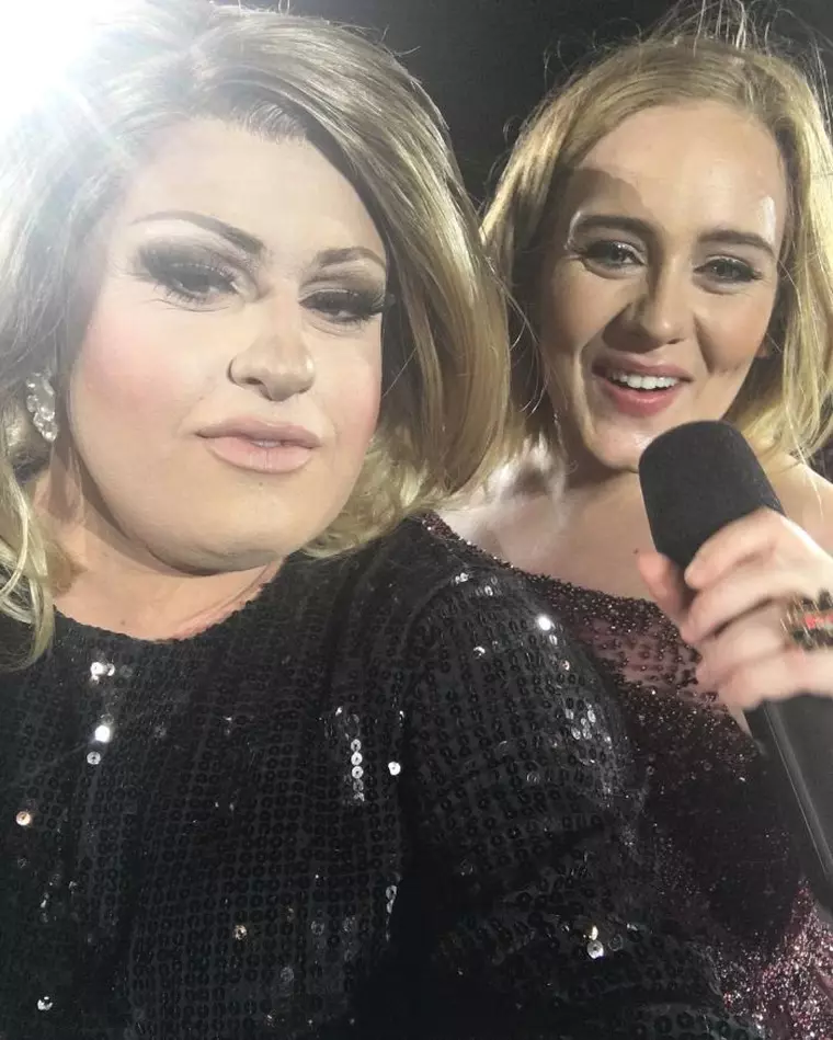 În timpul concertului din Perth, Australia, Adele și-a invitat imitatorul pe scenă. Îmbrăcat elegant, într-o rochie cu paiete, la fel ca vedeta, acesta s-a prezentat în fața miilor de spectatori cu numele de scenă – Feminem – și i-a declarat vedetei sale preferate că trăiește din asta, și anume că își câștigă cecul de salariu fiind… Adele.