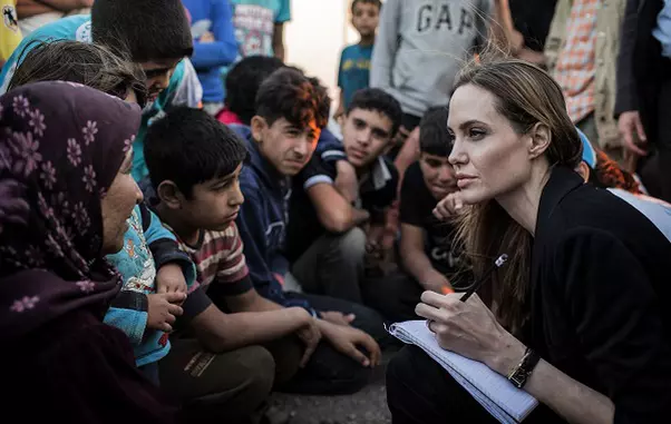Angelina l-a întâlnit pe micuţul sirian în timpul misiunilor sale umanitare în calitate de Ambasador al Naţiunilor Unite.