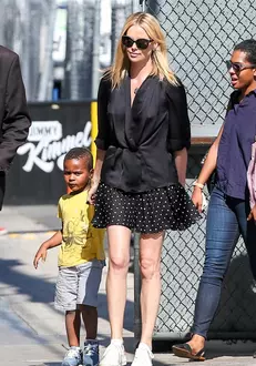 Actriţa l-a avut alături pe micuţul Jackson, singurul bărbat din viată ei acum, şi a părut extrem de relaxată. Pentru această apariţie a ales un outfit simplu, dar de efect, compus dintr-o bluză neagră, o fustă scurtă cu buline, ea completându-şi look-ul cu o pereche de tenişi şi ochelari de soare.
