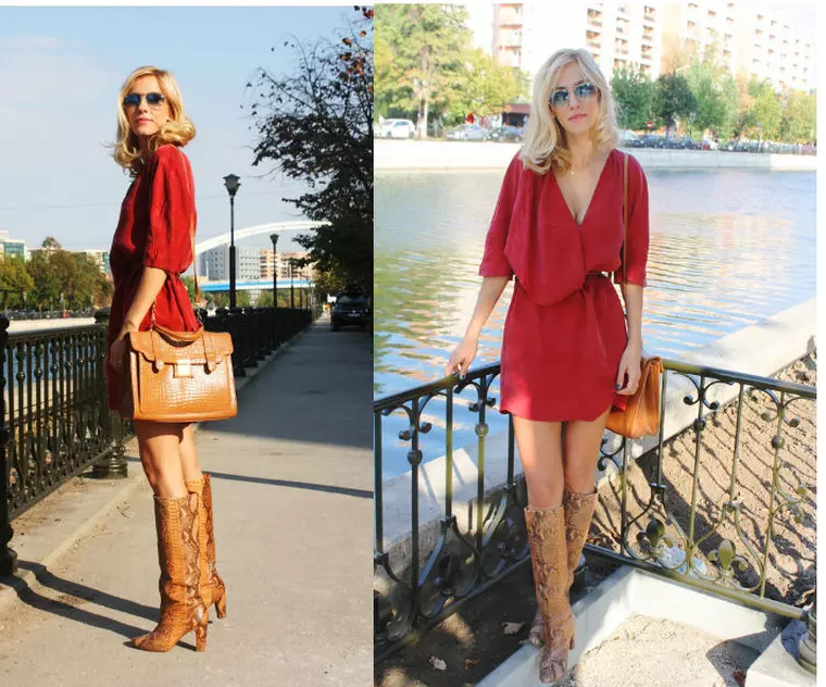 Profitand de ziua frumoasa de toamna si de soarele ce imbratiseaza totul in culori aurii, Dana a ales ieri o rochie „de culoarea vinului”, dupa cum spune si ea.