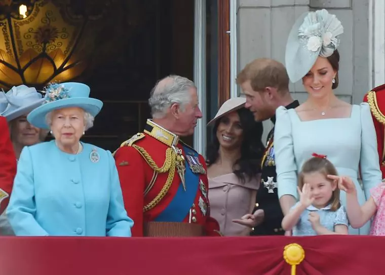 În timp ce Regina, Kate Middleton și Camilla au stat împreună în același balcon, de unde au urmărit ceremonia, Meghan Markle a stat în alt balcon și, evident, la un alt geam. Totuși, Meghan nu a fost singură, ci alături de Elke Büedenbender, soția președintelui german, Frank-Walter Steinmeier. În timp ce unii dintre fanii Ducesei au interpretat decizia Reginei ca pe un act diplomatic, concluzionând că suverana Marii Britanii ar fi rugat-o pe Meghan să-i țină companie – un semn clar că Elisabeta a II-a are încredere în calitățile diplomatice ale noii sale nepoate. Totuși, mulți au fost de părere că nu era cazul și consideră că, de fapt, viitoarea mămică a fost insultată de Regină.
