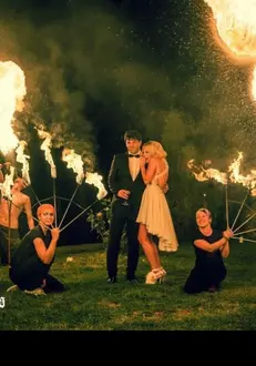 Mesajul care însoţeşte aceste fotografii este hashtag-ul „#3 ani', iar fotografiile îi surprind pe Delia si Răzvan, soţul ei, privind acrobatiile cu foc, ţinutele purtate de aceştia, şi pe Delia zâmbind fericită.