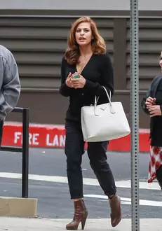 Pentru această ieşire, actriţa a ales un outfit casual, purtând un cardigan negru, pantaloni şi botine pe care le-a accesorizat cu o geantă albă Prada. Nu a lăsăt nicio clipă telefonul din mână, semn că dorea să afle în permanenţă informaţii despre fetiţa ei.