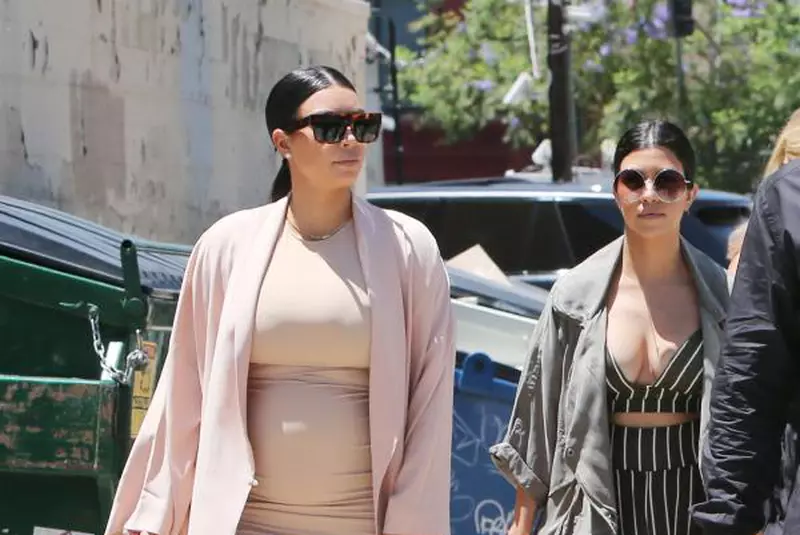 Mamă a unei fetiţe de 2 ani, North West, Kim se află în luna a 5-a de sarcină, iar pentru această ieşire în oraş a ales o rochie crem şi un trench roz pal. Sandalele cu toc şi ochelarii de soare au ajutat-o să-şi completeze look-ul sexy.